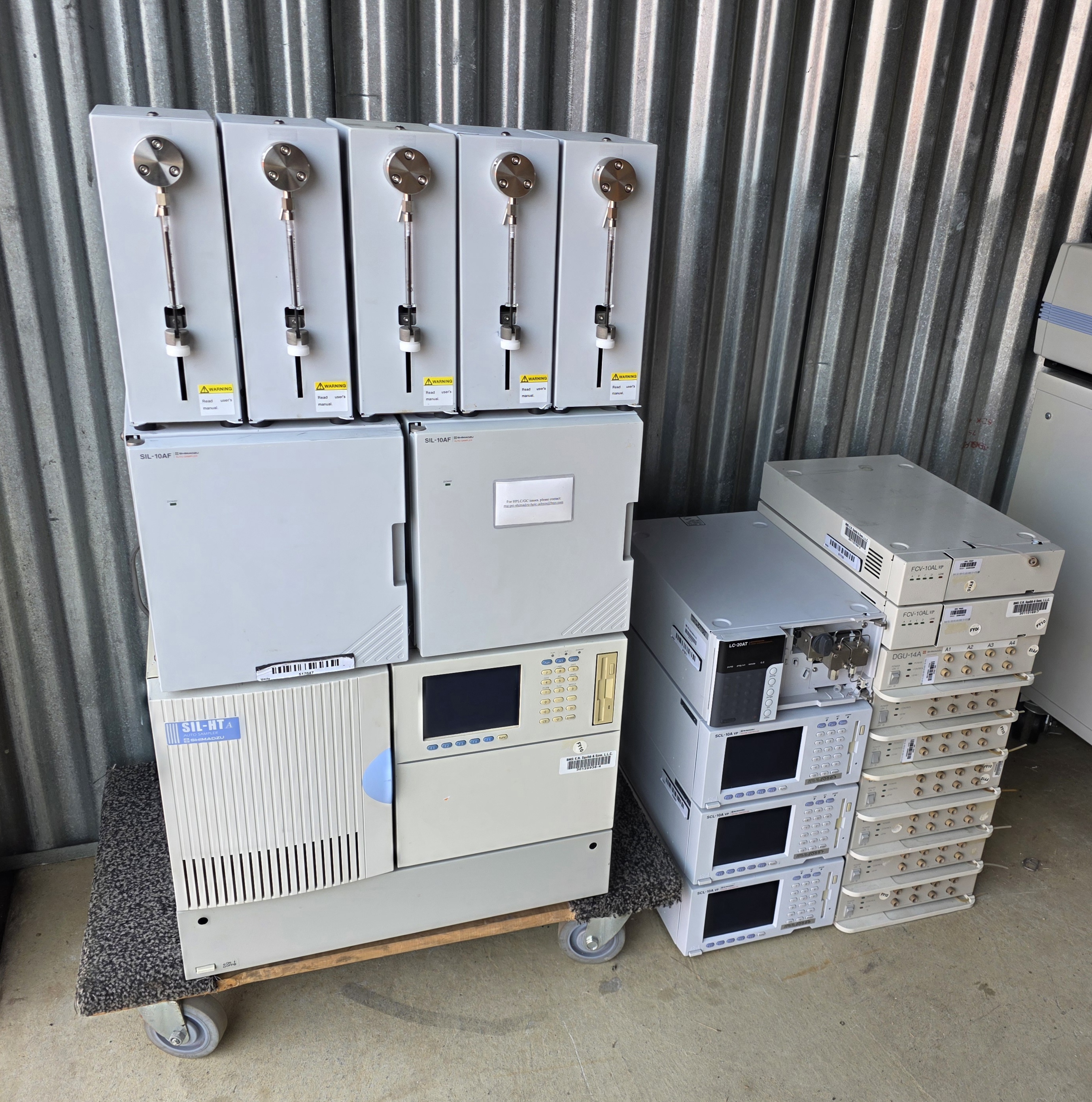 This is a large, well-maintained multi-module Shimadzu HPLC lot, suitable for: