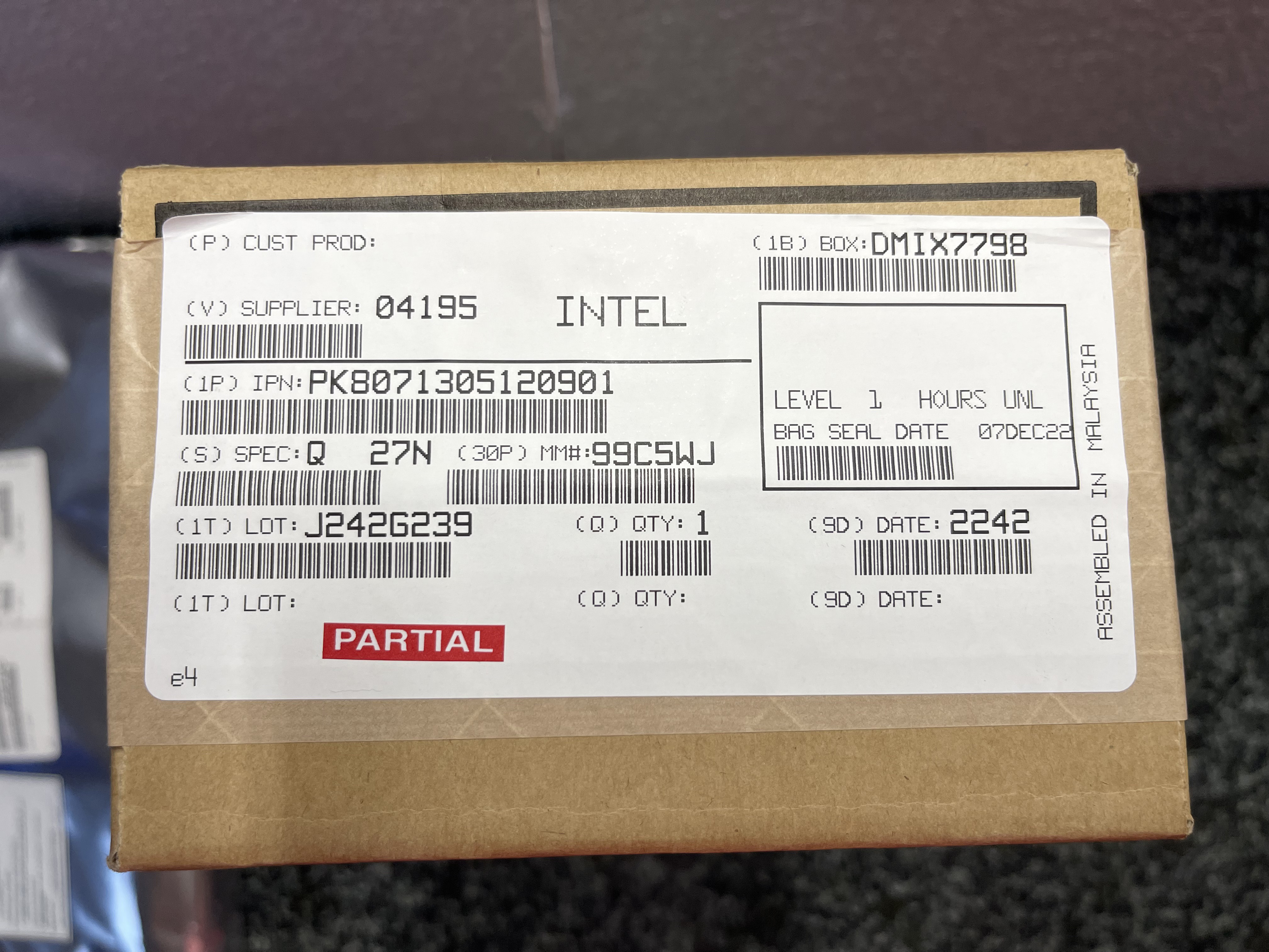 These are Intel engineering samples acquired from the liquidation of an autonomous trucking startup.