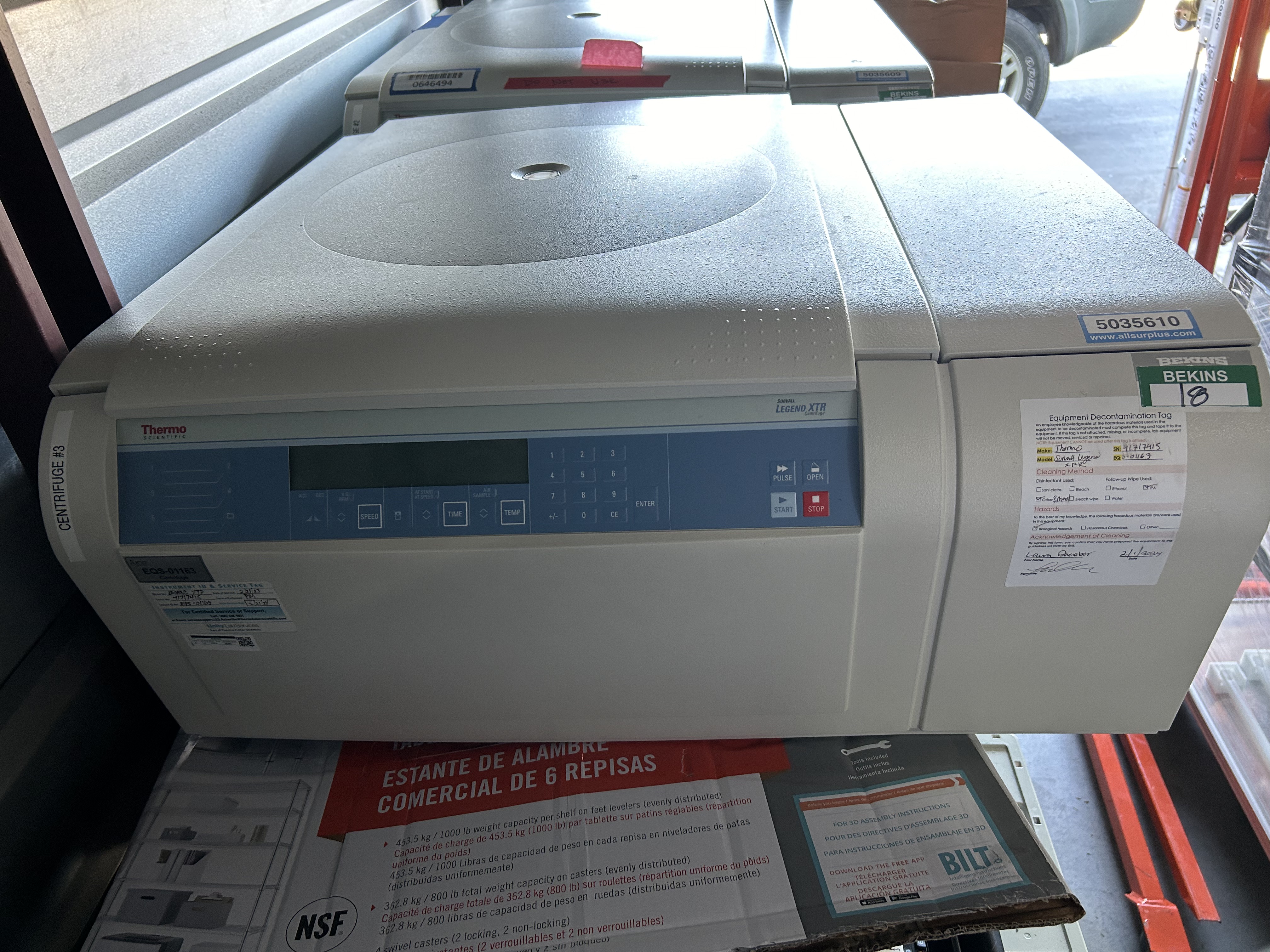 This unit was decommissioned and acquired from Bristol Myers Squibb. We believe it to be in working condition except for the latch doesn't hold the lid shut.